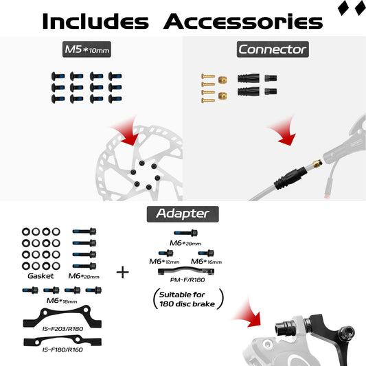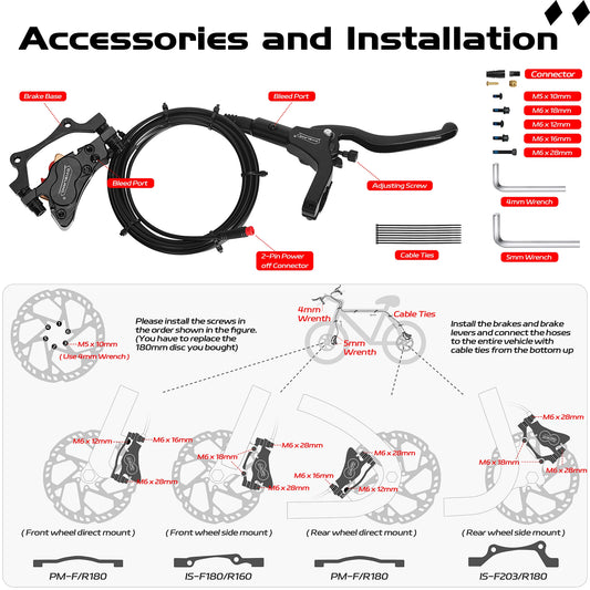 Kit de Frein à disque hydraulique DYISLAND LD4X-300 4Pistons pour E-Bike connexion 2-PIN & 3-PIN, diamètre des disques 180mm