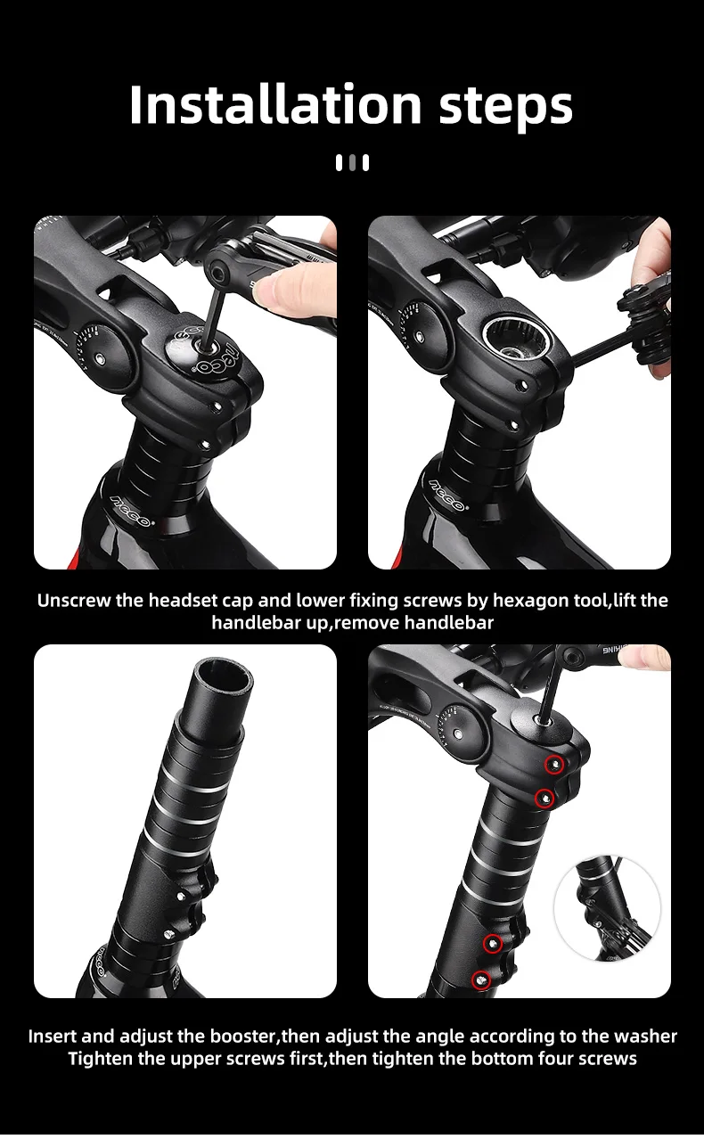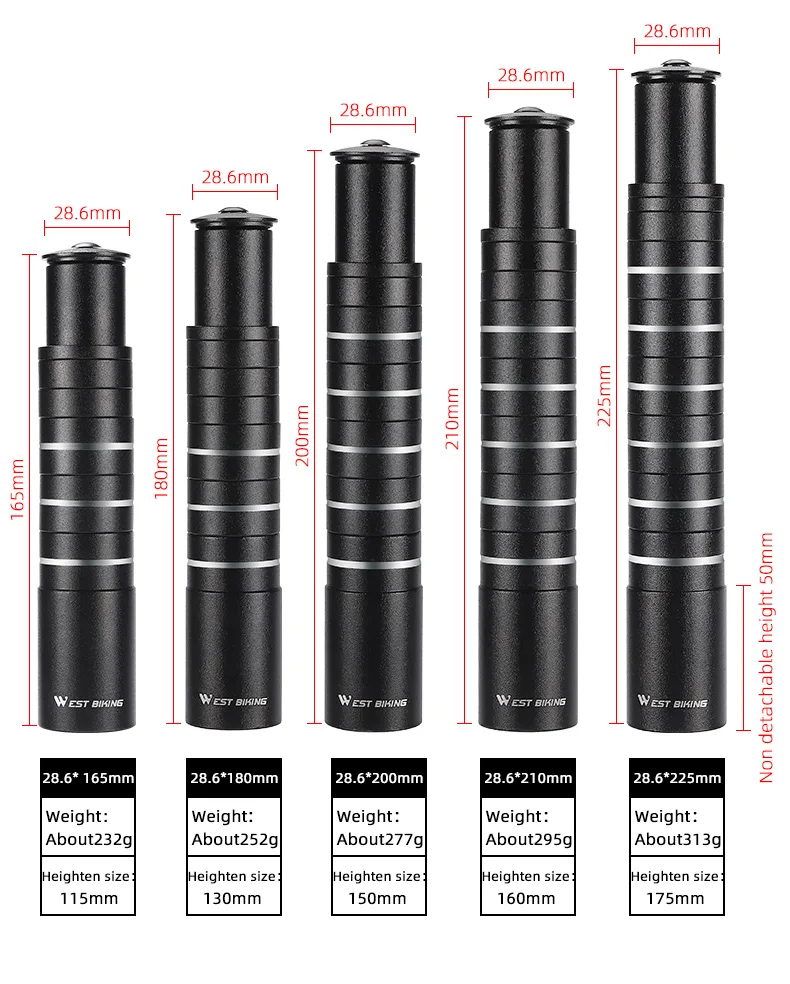 115-225mm Niveau 10 Réglage de la hauteur de la tige RiserCouleur: Noir matLa longueur peut être ajustée facilement et rapidement grâce à des rondelles